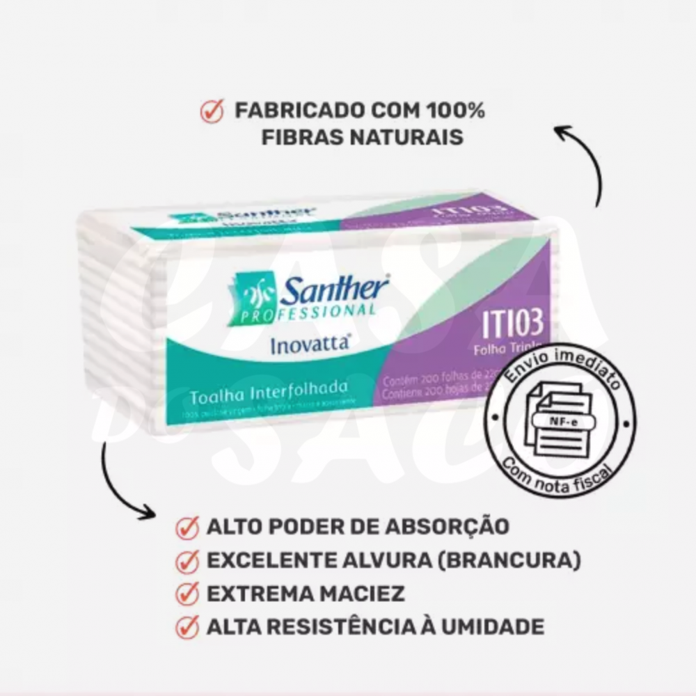 A toalha Interfolhada de folha tripla ITI03 Inovatta possui duas dobras que auxiliam a absorção de líquidos, garantindo uma maior resistência e um ótimo custo benefício dentre as opções no mercado.