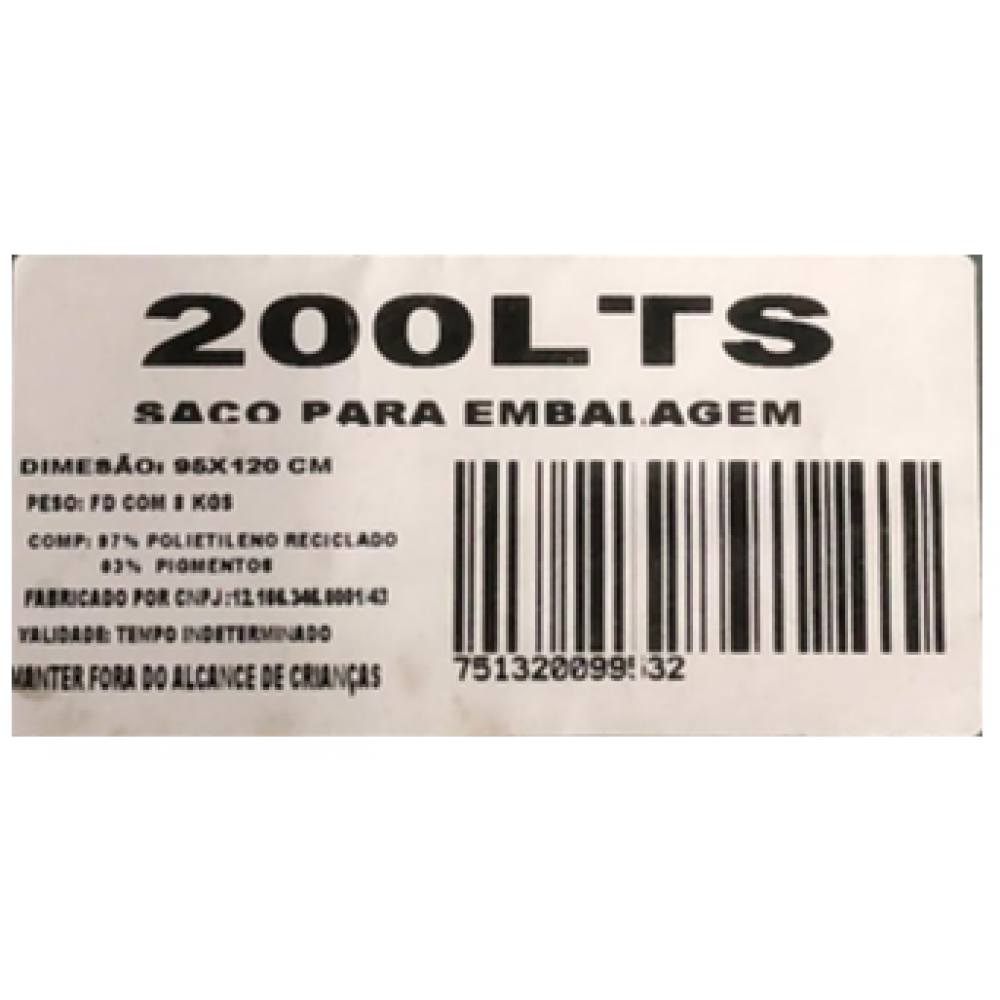 SACO LIXO PRETO REFORÇADO 8KG 200L C/50